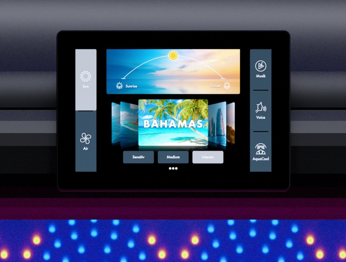 Personalize your tanning session according to your specific requirements. By choosing your dream destination (in Sensitive/Medium/Intensive modes), you control the overall intensity of the solarium. Fine-tune your tanning experience by choosing the time of day. You can change your settings flexibly at any time during the session.