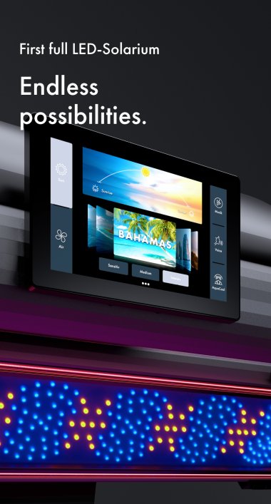 For the first time, a solarium is using LEDs for the spectra of UVA, UVB, and red light. This opens up completely new possibilities to make your tanning experience even more individual.